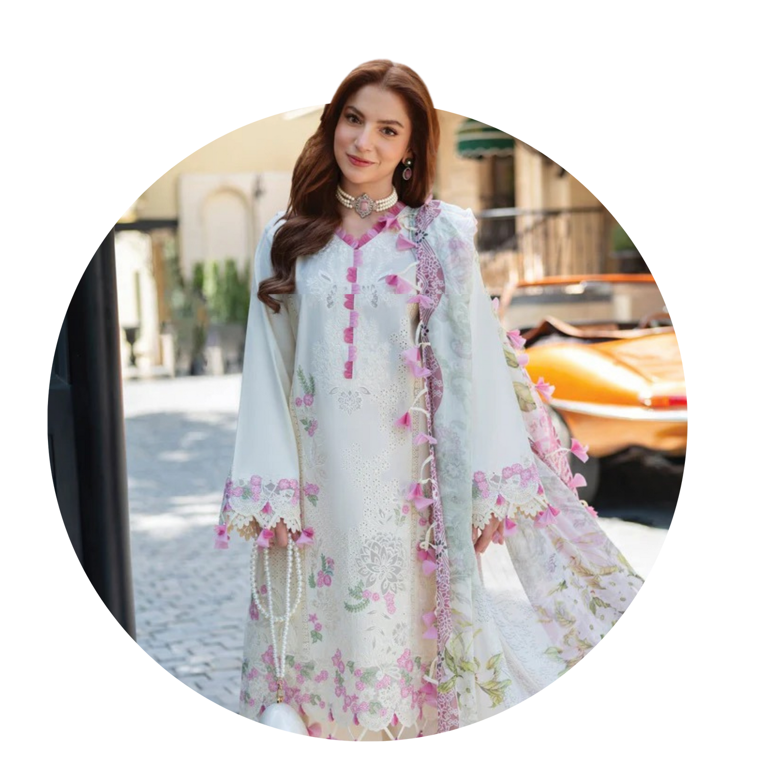 White Embroidered Chinon Solid Straight Kurta With Dupatta Set