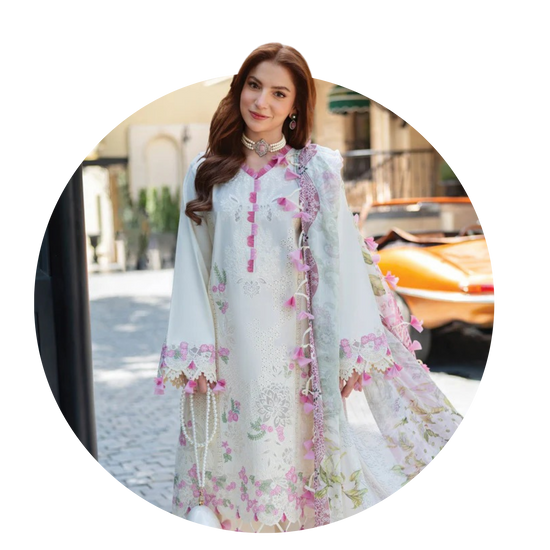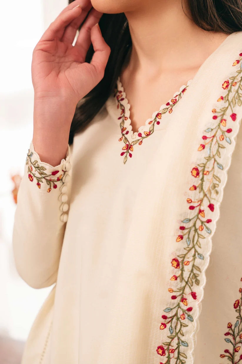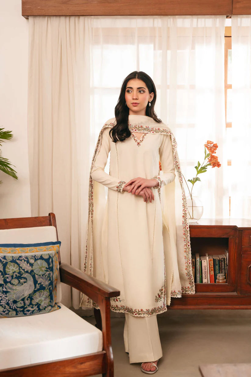 SOLID IVORY HAND EMBELLISHED KURTA WITH FARSHI SHALWAR AND DUPATTA
